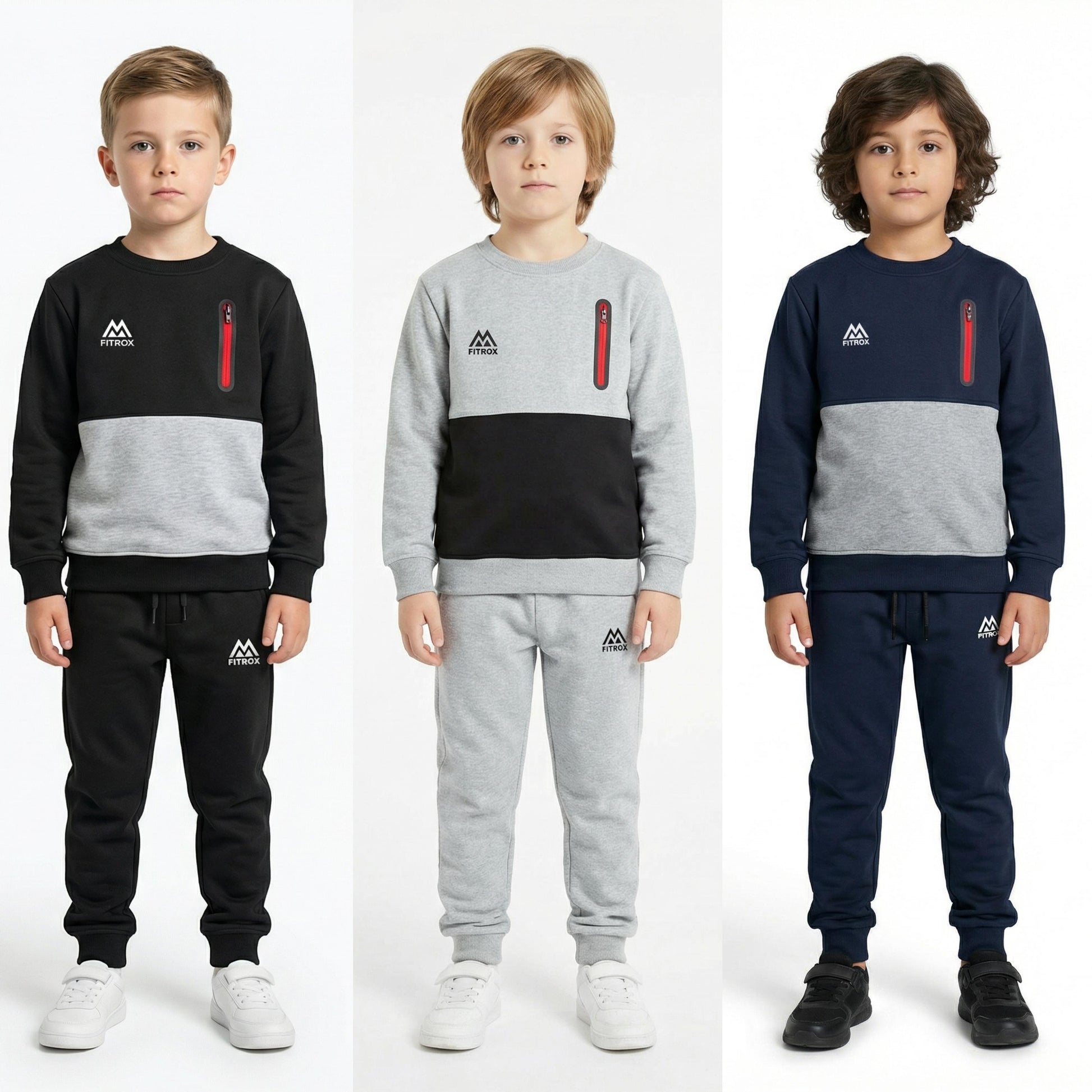 FITROX Kids Polyester Tracksuit Set β Cargo Pocket Sweatshirt & Joggers (7β14 Years) Boys Girls Unisex Polyester Tracksuit β 2 Piece Sweatshirt + Joggers