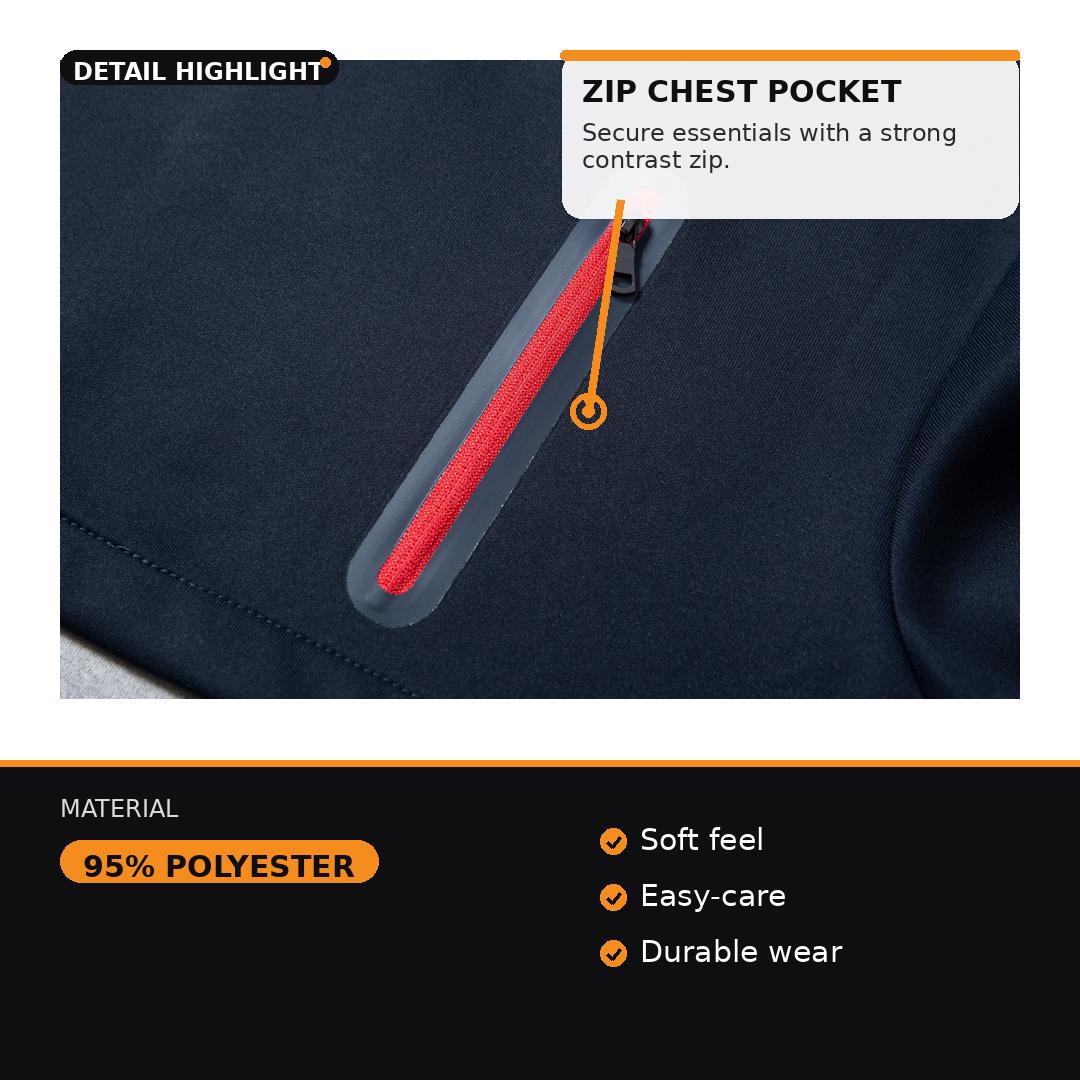 Secure chest pocket with a durable contrast zipβideal for keeping small essentials safe.