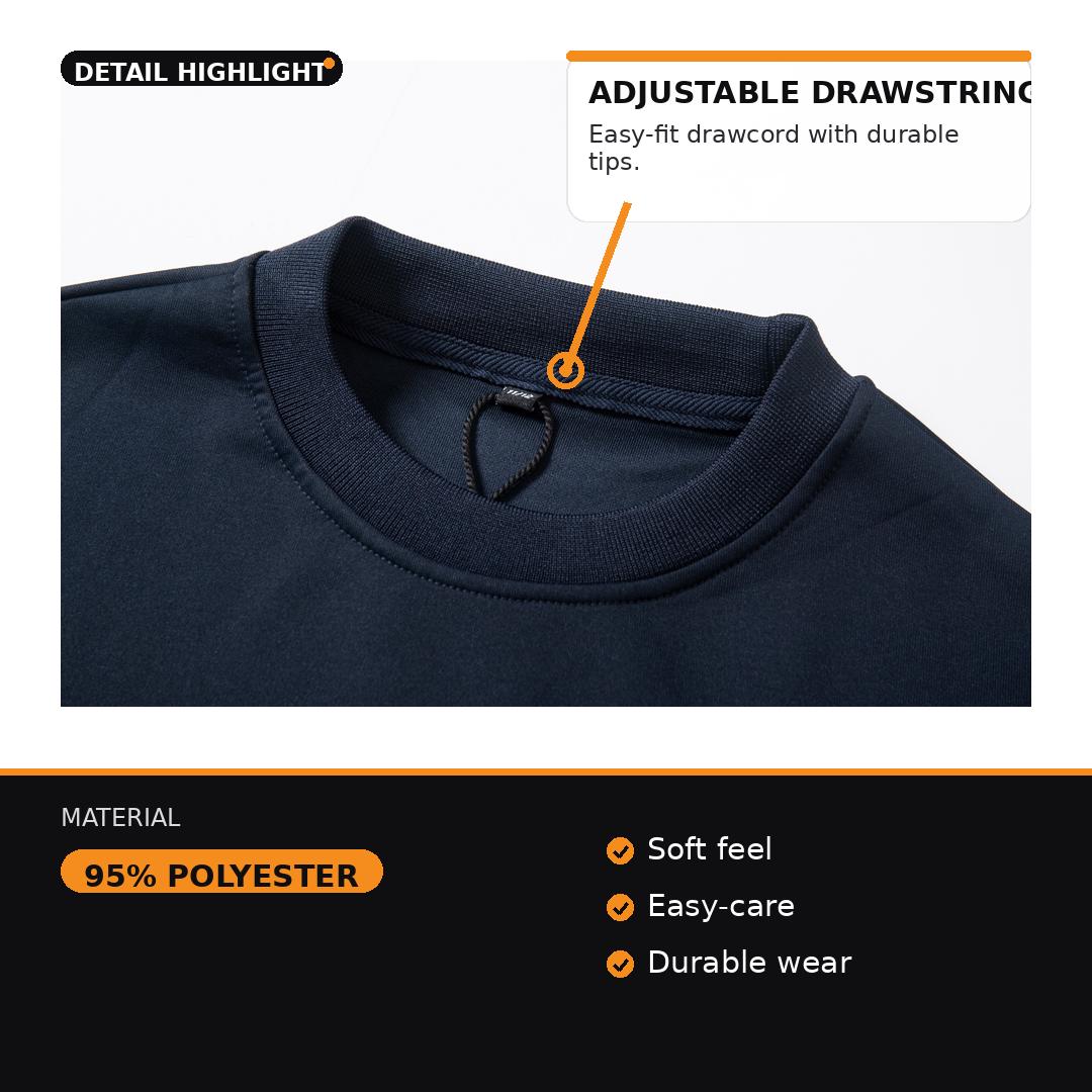 Neat, sturdy drawcord with durable tipsβquick to adjust for the right fit.