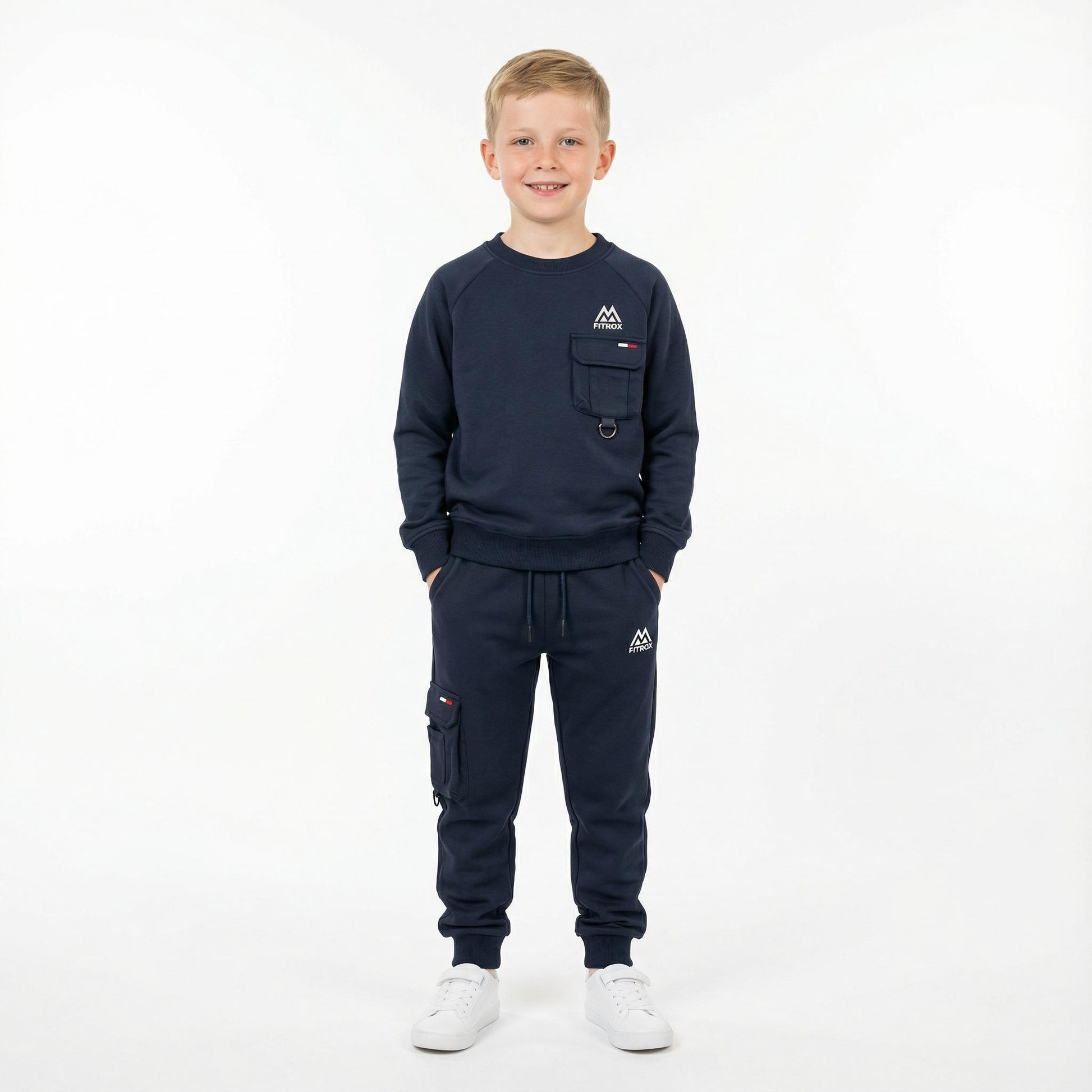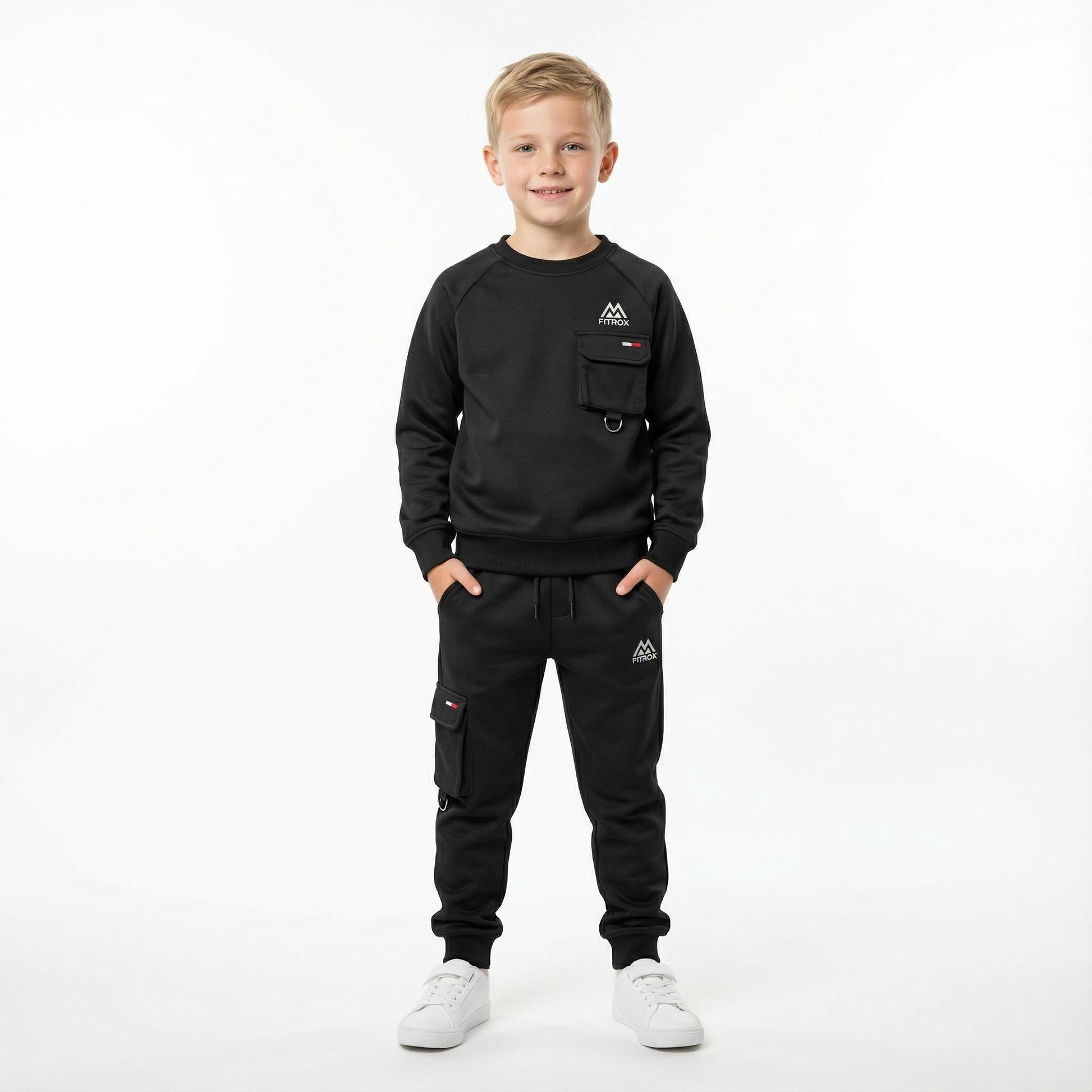 FITROX Kids Polyester Tracksuit Set β Cargo Pocket Sweatshirt & Joggers (7β14 Years) Boys Girls Unisex Polyester Tracksuit β 2 Piece Sweatshirt + Joggers