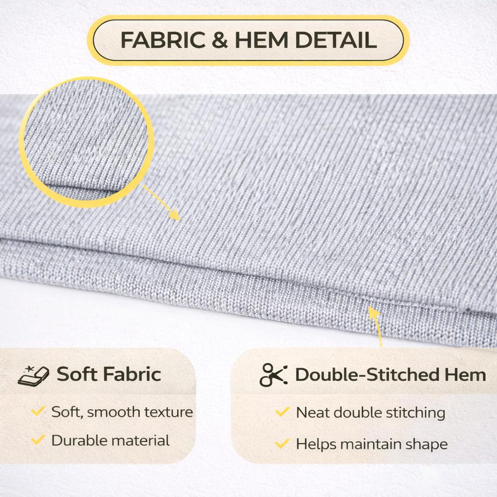 Durable Fabric & Neat Hem: The fabric is closely woven for strength and a smooth feel. Clean double stitching at the hem helps maintain shape and provides a tidy finish after regular wear and washing.