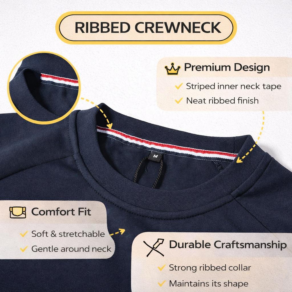 Ribbed Crewneck Detail: Neat ribbed collar with inner neck tape for a clean finish. Comfortable around the neck and helps the collar keep its shape.